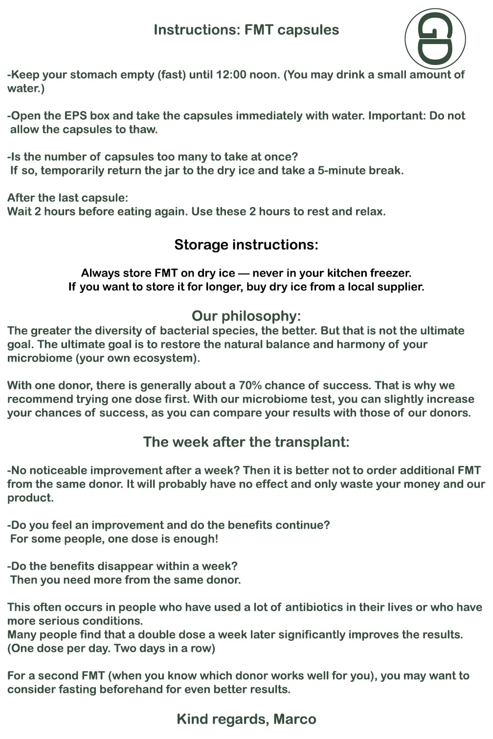 Jetzt, da wir den Mikrobiom-Bericht anbieten können, können Sie Ihren Bericht nutzen, um herauszufinden, welcher Spender gut für Sie geeignet ist. Welche Bakterienarten fehlen mir und welcher Spender hat viele von ihnen! Welche Bakterien sind bei mir überwuchert? Sie möchten so wenig wie möglich davon von dem Spender haben, usw. Wenn die Empfehlung mehrere Spender enthält, können Sie eine Dosis aufteilen und weniger Kapseln von mehreren Spendern bestellen.