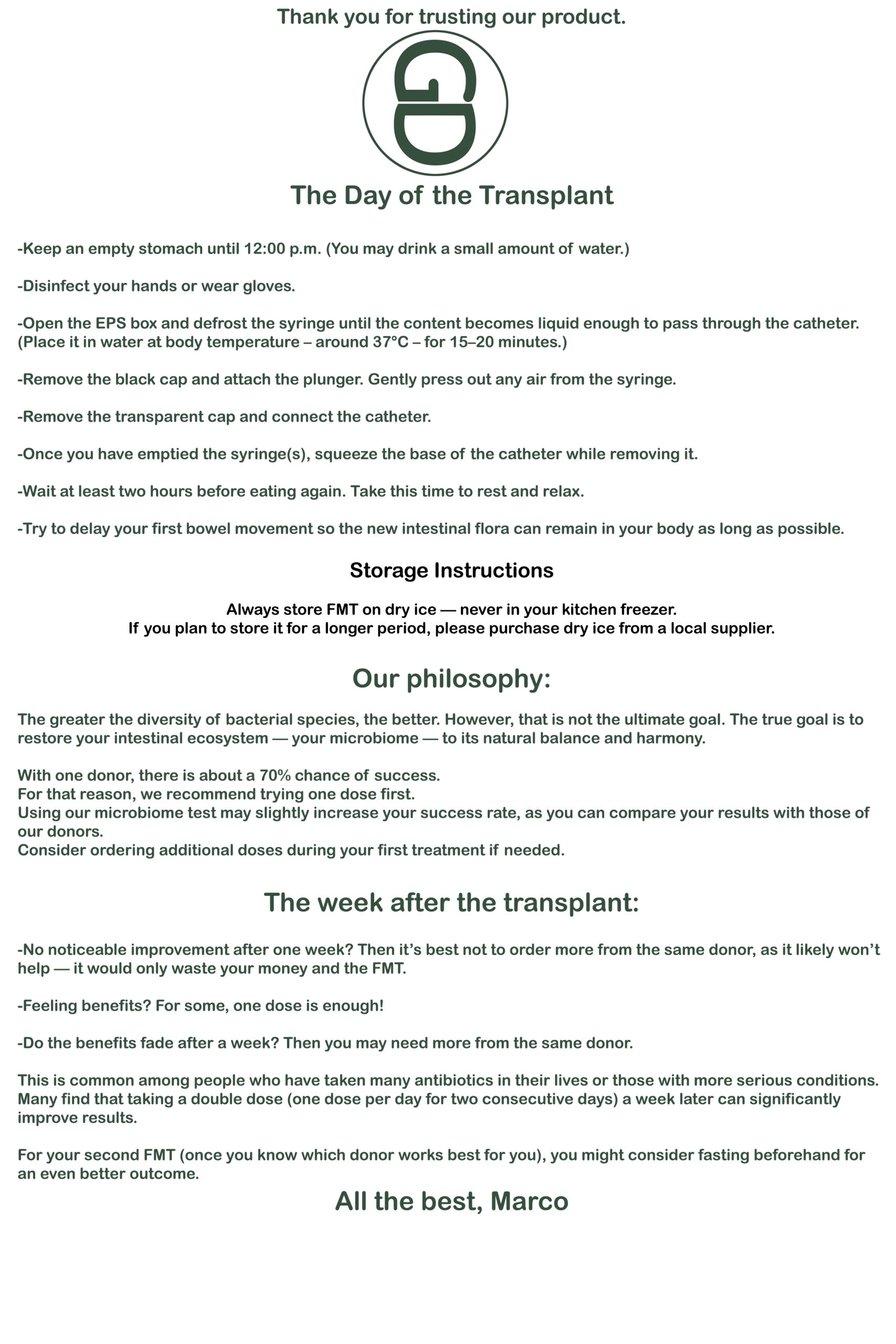 In der Praxis wird HALVE DOSIS eher bei Menschen eingesetzt, die bereits viele Antibiotika eingenommen haben oder bei schwereren Erkrankungen wie Collitus Ulcerosa. Es ist eine Methode, um zunächst den richtigen Spender für Sie zu finden.
